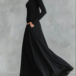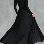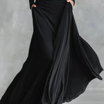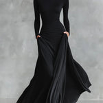 Adele - Moderní dlouhé šaty z černého krepu s lodičkovým výstřihem a sklady